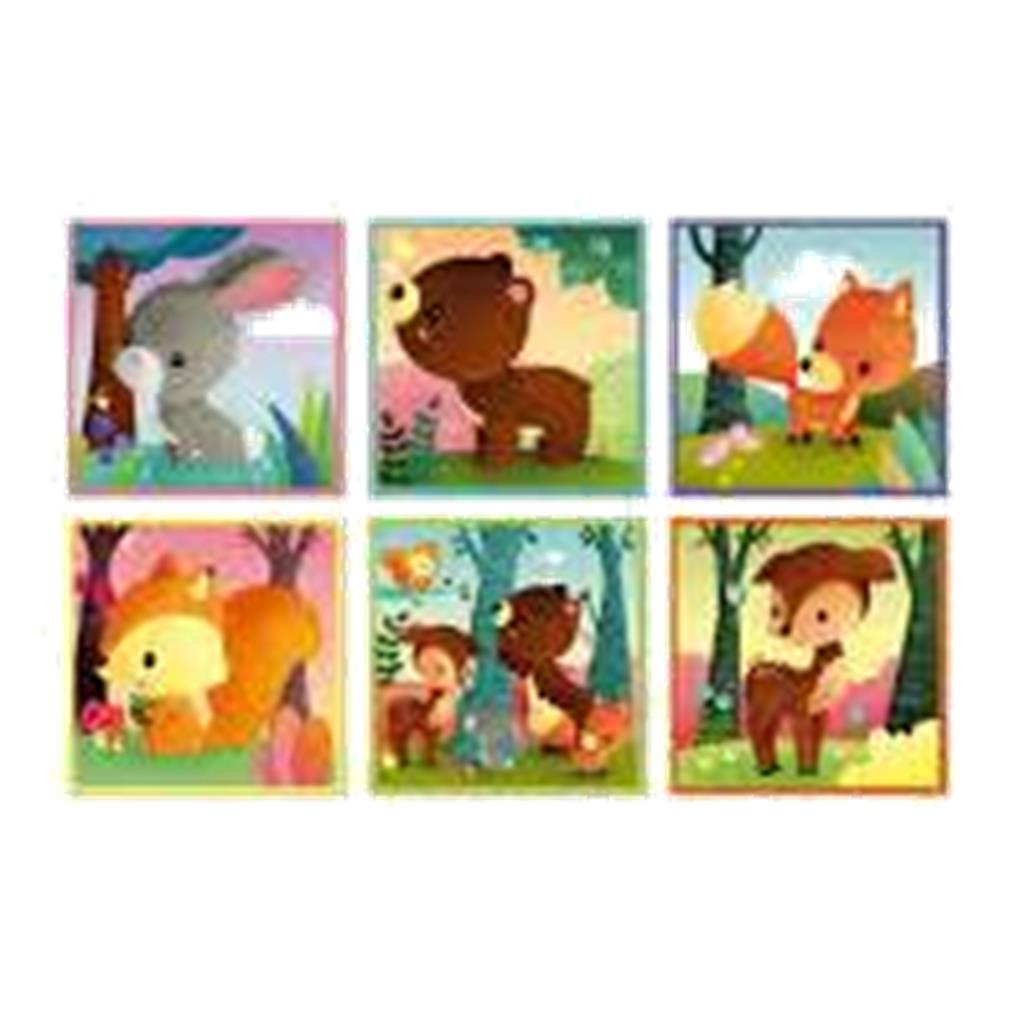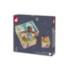 Juego educativo de Janod que consiste en 9 bloques de cartón que se pueden combinar para formar 6 imágenes diferentes de animales del bosque . Con este puzle los niños podrán desarrollar su imaginación , su memoria y motricidad mientras se divierten .