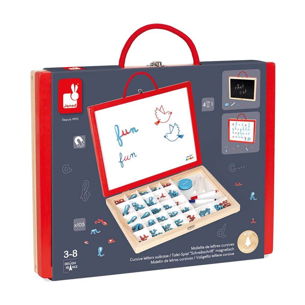 ¡Un maletín ideal para aprender a escribir divirtiéndose! 4 actividades reunidas en 1: – Una cara m