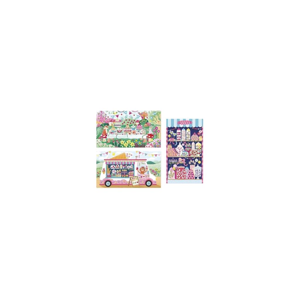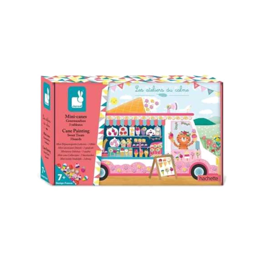 una actividad creativa con 3 tableros de pegatinas para decorar con minibastones sobre la temática de los dulces, una actividad de ocio creativa destinada a niños a partir de 7 años.