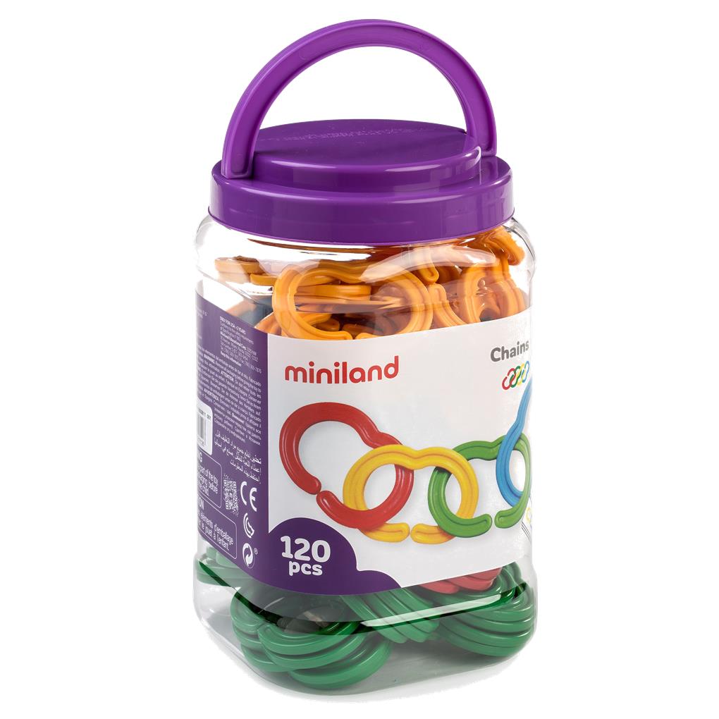 Eslabones de inmejorable calidad. Su diseño facilita el enganche y permite una manipulación muy cómoda. Se presentan acompañados de fichas a color con actividades de seriación y clasificación.