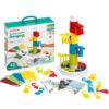 Las clavijas aparecen con las tres formas básicas: círculo, cuadrado y triángulo y los tres colores primarios: rojo, azul y amarillo. Se acompañan de 36 propuestas de actividades impresas en lámina de plástico con: Las actividades con número, Juegos de clasificación, Seriación y Juegos de ensartar.