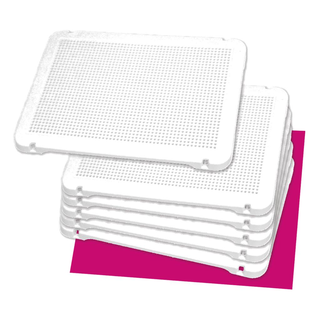 Set de placas, soportes para insertar los pegs y crear divertidos mosaicos. Este juego desarrolla la creatividad, ejercita la coordinación del movimiento de los dedos mediante el agarre de pinza y afianza las primeras nociones espaciales.