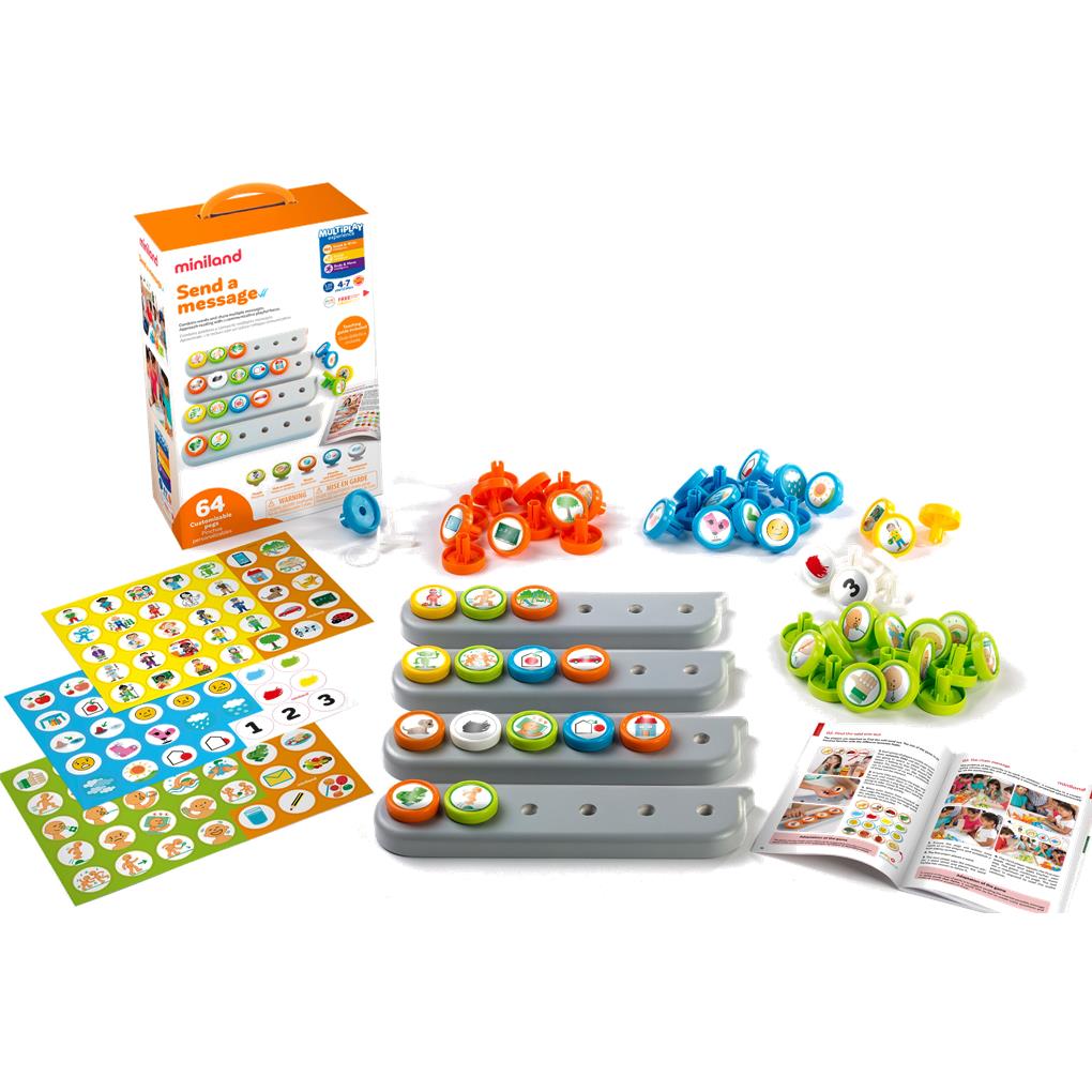 Send a Message permite crear mensajes de manera cooperativa y manipulativa, fomentando la estructuración del lenguaje infantil. Potencia el desarrollo de la competencia comunicativa y ayuda al desarrollo del lenguaje, la adquisición de nuevo vocabulario y la estructuración de frases, fomentando la producción oral y la escucha activa entre iguales. Un primer acercamiento a la lectura con un lúdico enfoque comunicativo.