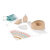 Contenido: 1 bolsa de tela, 1 bandeja, 1 tetera, 1 azucarera, 1 cuchara de azúcar, 2 platos, 5 pasteles, 1 plato para pastel, 2 bolsitas de té, 2 cucharas y 2 tazas.