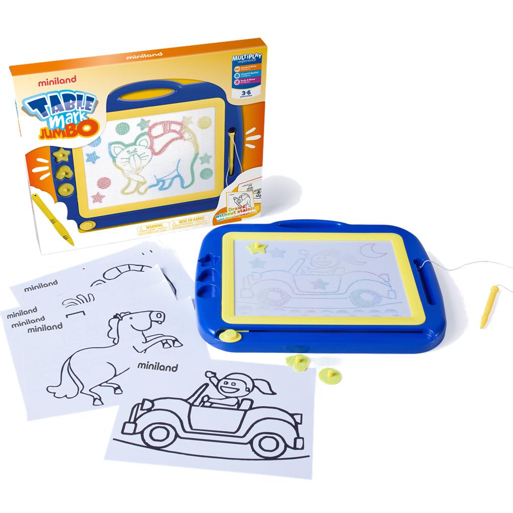 Pizarras para dibujar y escribir sin parar y no manchar nada por lo que es ideal para jugar en viajes o en casa. Sus trazos aparecen en varios colores. Disponen de borrador y tampones con formas. Incluyen varios modelos para reproducir.