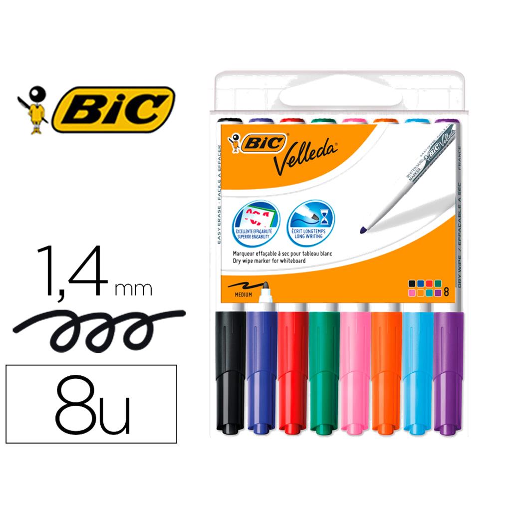 Rotulador bic velleda para pizarra punta redonda 2 mm bolsa de 8 unidades colores surtidos.