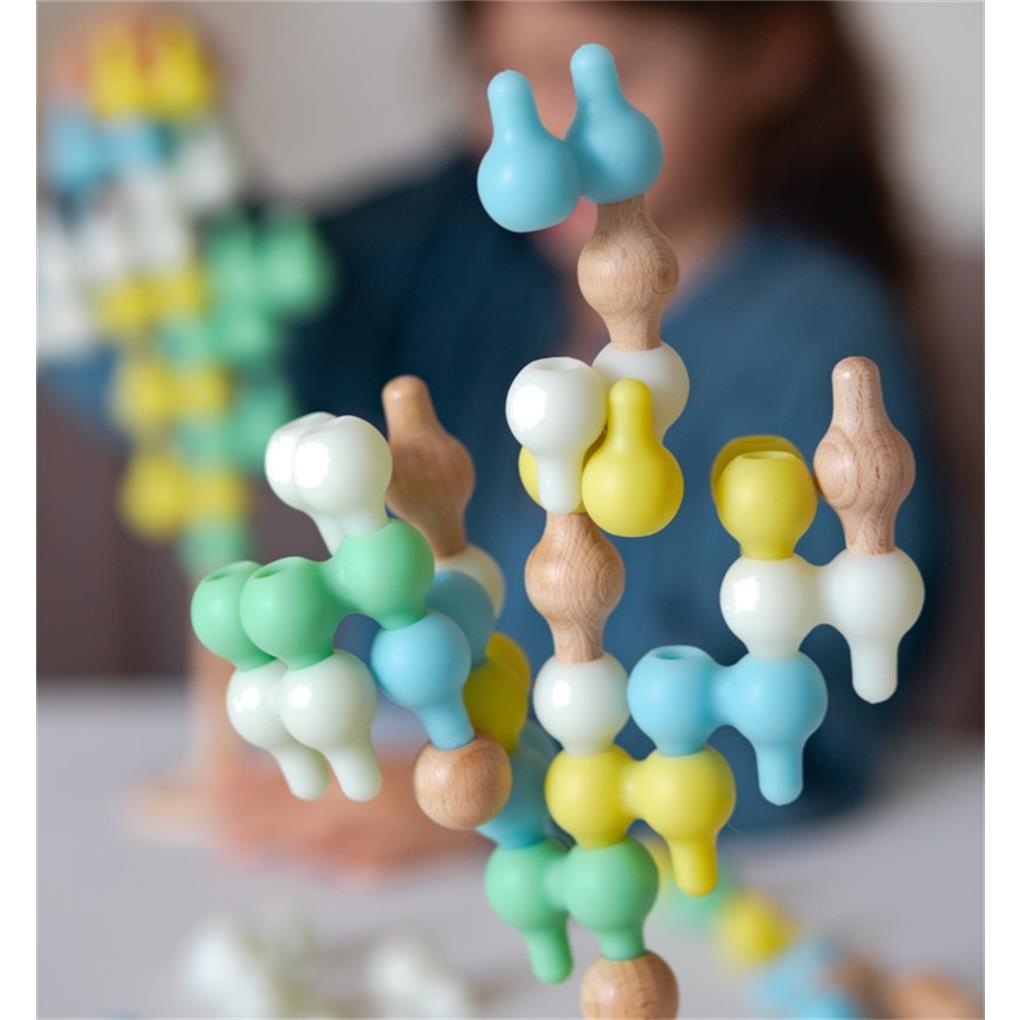 Magic Lights es un juego compuesto por 38 piezas de distintos materiales (madera de haya y plástico luminiscente), en el que los niños pueden combinar los elementos para crear formas y figuras con el objetivo de construir sus propias luces. Con Magic Lights, los niños desarrollan su creatividad al transformar las piezas, explorar diferentes posibilidades y resolver pequeños desafíos hasta alcanzar su meta: diseñar su propia lámpara luminosa. Las piezas contienen pigmentos especiales que acumulan luz y la liberan lentamente en la oscuridad. Basta exponerlas a la luz del día durante 1-3 minutos para que comiencen a brillar. Los pigmentos son totalmente seguros e inocuos.