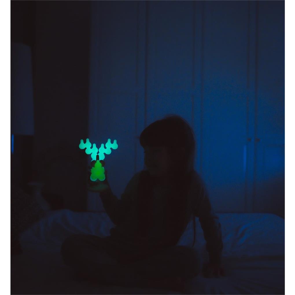 Magic Lights es un juego compuesto por 38 piezas de distintos materiales (madera de haya y plástico luminiscente), en el que los niños pueden combinar los elementos para crear formas y figuras con el objetivo de construir sus propias luces. Con Magic Lights, los niños desarrollan su creatividad al transformar las piezas, explorar diferentes posibilidades y resolver pequeños desafíos hasta alcanzar su meta: diseñar su propia lámpara luminosa. Las piezas contienen pigmentos especiales que acumulan luz y la liberan lentamente en la oscuridad. Basta exponerlas a la luz del día durante 1-3 minutos para que comiencen a brillar. Los pigmentos son totalmente seguros e inocuos.
