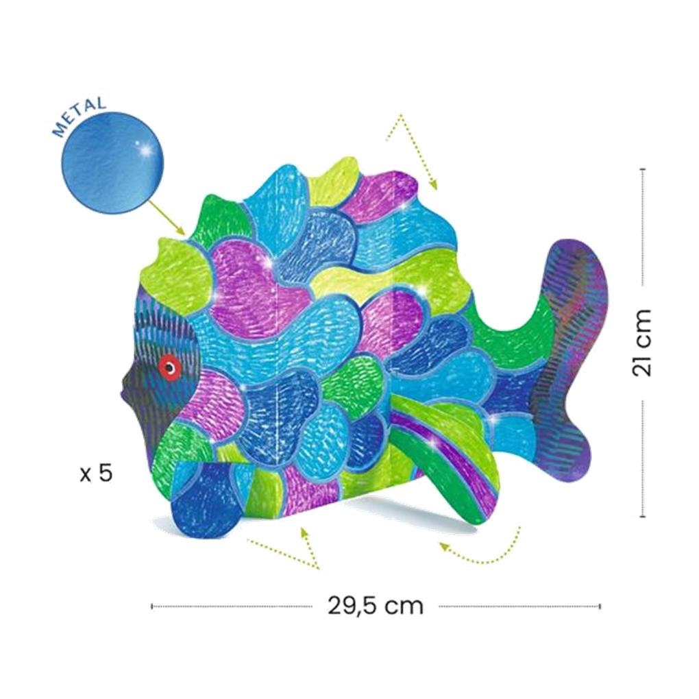 ¡Un estuche para colorear y crear un magnífico mundo marino con reflejos metalizados! Primero colorear y, después, doblar y unir las piezas. Irá apareciendo un mundo marino que se iluminará con los reflejos metalizados.