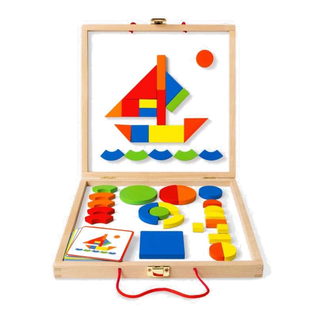 MALETIN DE GEOFORMAS DE MADERA E IMANTADO CON 42 PIEZAS Y 24 FICHAS PARA REALIZAR. RECOMENDADO A PARTIR DE 4 AÑOS