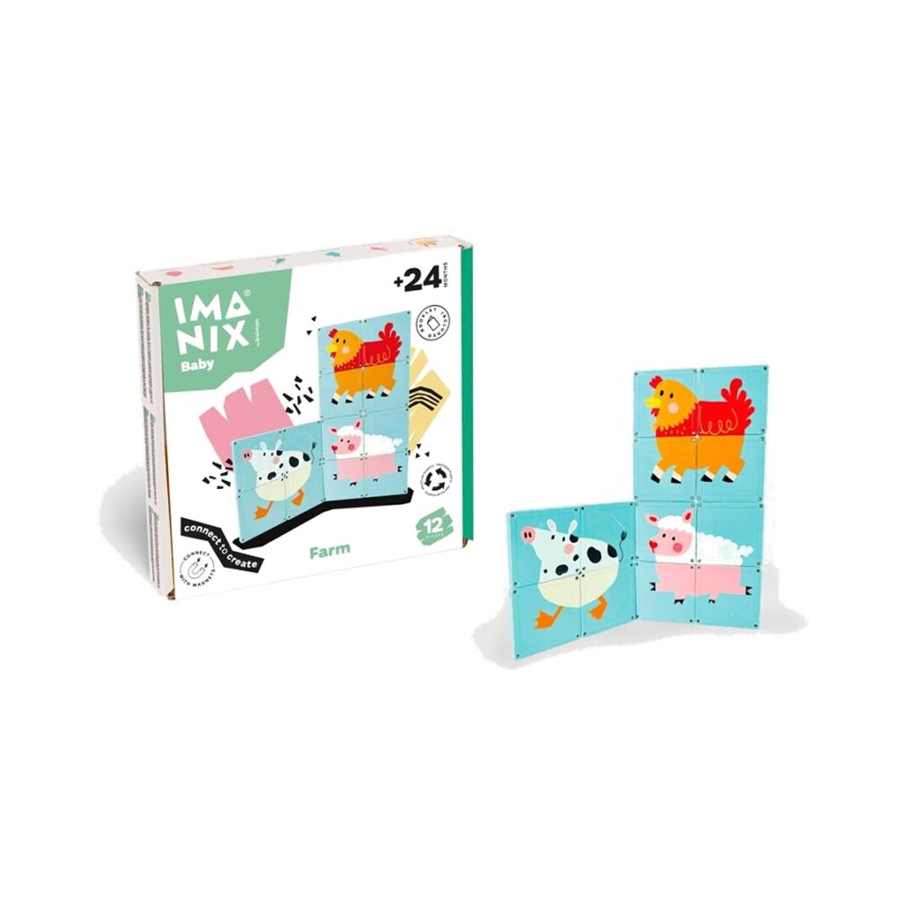 Set de 3 puzles reversibles con un total de 12 piezas magnéticas con animales de la granja Imanix Baby, de Braintoys.
