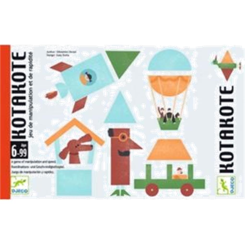 Se da la vuelta a la primera carta de desafío y se coloca en el centro de la mesa para que todos los jugadores puedan verla. La carta tiene uno o dos dibujos dependiendo del nivel de dificultad elegido. Anverso 4 cartas Kotakote Reverso Atención. Partes pequeñas. Un juego de Sébastien Decad. Si la carta de desafío tiene 2 dibujos, deben reproducir ambos. Nivel 1 Nivel 2 Todos los jugadores intentan reproducir al mismo tiempo el dibujo de la carta de desafío con sus cartas Kotakote. Para ello, deben colocar una forma geométrica (del color correcto) junto a la mitad del dibujo correspondiente.
