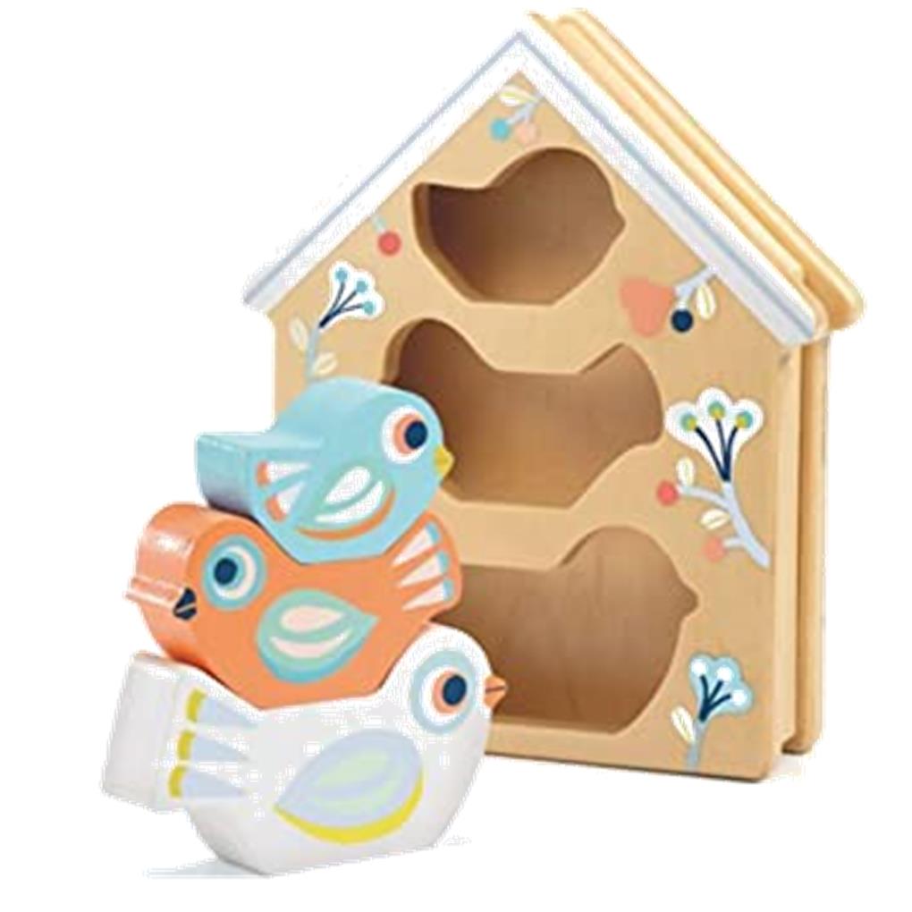 BABYBIRDI – ENCAJABLE DE MADERA A PARTIR DE 18 MESES, COLOCA LOS PAJAROS EN SUS HUECOS.