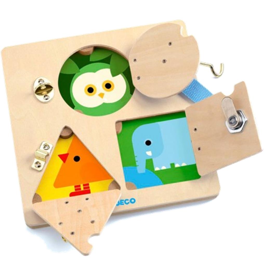 Lock BASIC es una base de madera con los que jugar y aprender a abrir y cerrar distintos tipos de ci