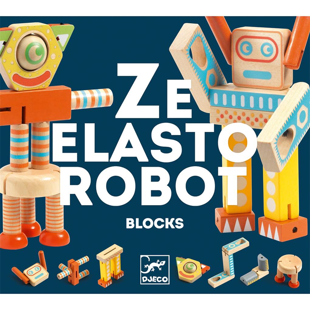 -Ze Elastorobot es un juego de construcción de robots articulados de madera. ¡Hay que unir siete piezas recurriendo a la imaginación para crear un sinfín de robots divertidos!