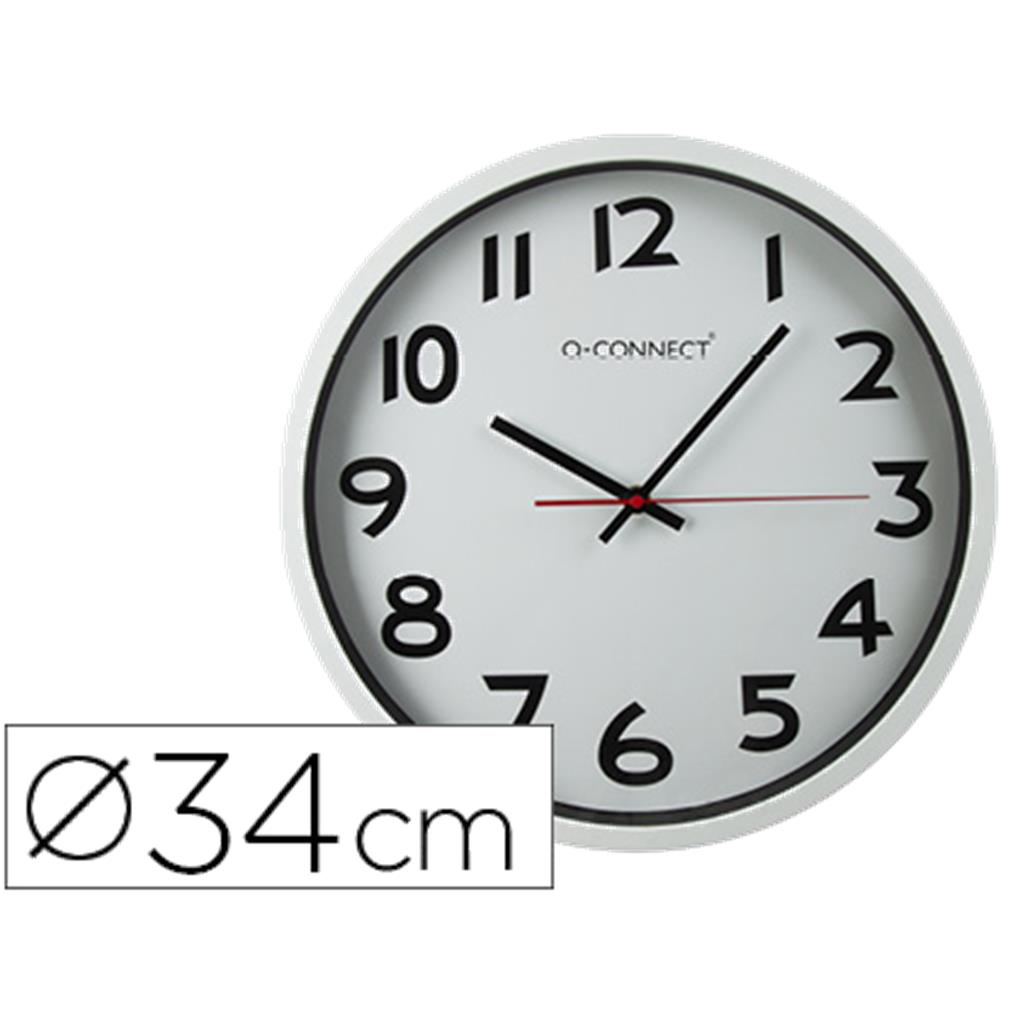 Reloj q-connect de pared plastico oficina redondo 34 cm marco blanco.