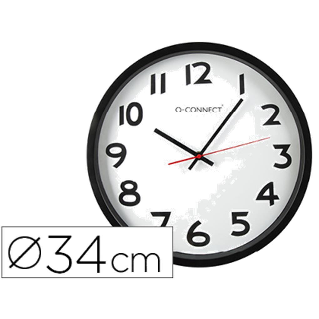 Reloj q-connect de pared plastico oficina redondo 34 cm marco negro.