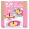 -Un kit creativo compuesto por 4 peonzas y 18 discos de dragones para colorear. El niño colorea los dragones y los coloca en la peonza. ¡Es hipnótico! Al girar, los motivos desaparecen y los colores se mezclan.