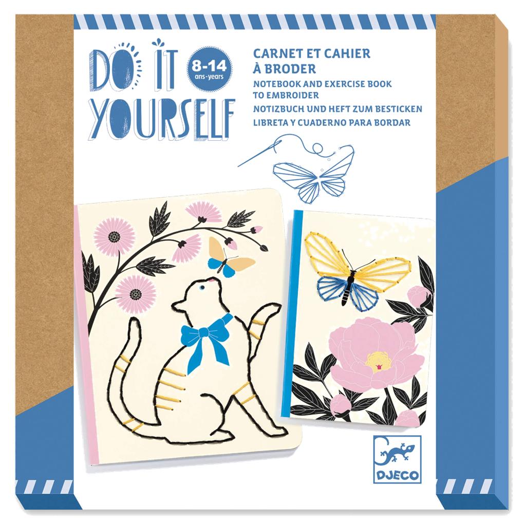 -Un kit creativo que incluye 2 cuadernos surtidos (2 tamaños) para bordar. El niño sigue las instrucciones y reproduce los diseños que se bordan en las tapas de los cuadernos. Incluye todo el material.