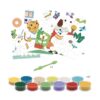 -Una primera actividad con arena de colores apta para niños a partir de 4 años. Para completar los 4 cuadros, el niño coloca su cuadro en la caja, desvela las grandes áreas adhesivas con la herramienta y luego aplica arena de colores siguiendo el código de colores indicado en el folleto. ¡Una vez terminada la actividad, los colores se revelan y los cuadros cobran vida!
