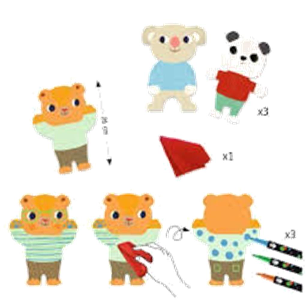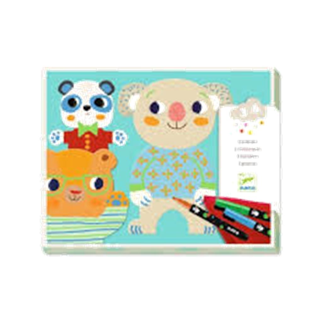 Tres pizarras con forma de animales encantadores para colorear con rotuladores de tiza líquida, en las que el niño podrá colorear siguiendo las lineas de puntos, haciendo grafismo, o podrá imaginarse el personaje y hacer dibujo libre.