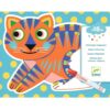 Contenido: 4 láminas ilustradas y siluetadas de plástico blando con una zona blanca que desaparece, un rotulador al agua y 1 soporte de cartón grueso.