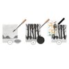 Contenido: 8 cuadros ilustrados (15 x 20 cm – 4 modelos x 2), 4 hojas de calcomanías, 3 cuencos encajables, 1 paleta de 2 témperas (blanca y negra), 2 pinceles, 1 lápiz y 1 esponja, 1 mantel protector, 1 folleto explicativo paso a paso a color.