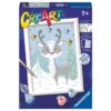 Contenido: 4 tarjetas ilustradas (20 x 20 cm), 6 tubos de purpurina, 1 pincel, 1 herramienta de plástico, 1 folleto con explicaciones paso a paso a color.