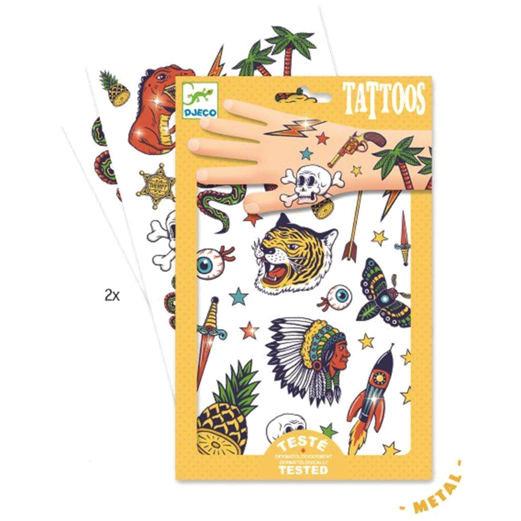 -Dos hojas de calcomanías sobre los temas favoritos de los niños: el lejano oeste, dinosaurios, animales, calaveras, etc. ¡Hay para todos los gustos! ¡Para el deleite de los niños, están cubiertos con detalles dorados! Son fáciles de usar, ya que se presentan precortadas y se aplican con un poco de agua. Dermatológicamente probado.
