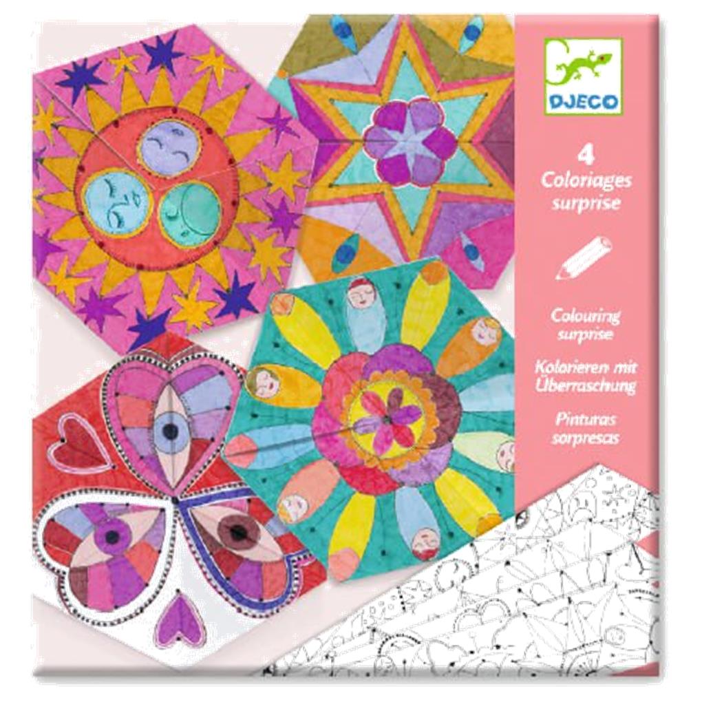 -¡Efecto hipnótico asegurado! Un estuche para colorear sobre el tema de las constelaciones. El niño dobla y monta las tiras de papel para crear 4 fascinantes mandalas de estilo rosetón. Luego colorea las tres caras del objeto. Con cada paso, sorpresa: ¡aparece una nueva figura coloreada!