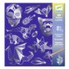 -Un estuche de 4 tarjetas para rascar fosforescentes para descubrir los animales que se esconden en las profundidades marinas. El niño reproduce los dibujos imaginados por el artista raspando la superficie de la tarjeta con el punzón de madera. Sorpresa: ¡los animales brillan en la oscuridad!