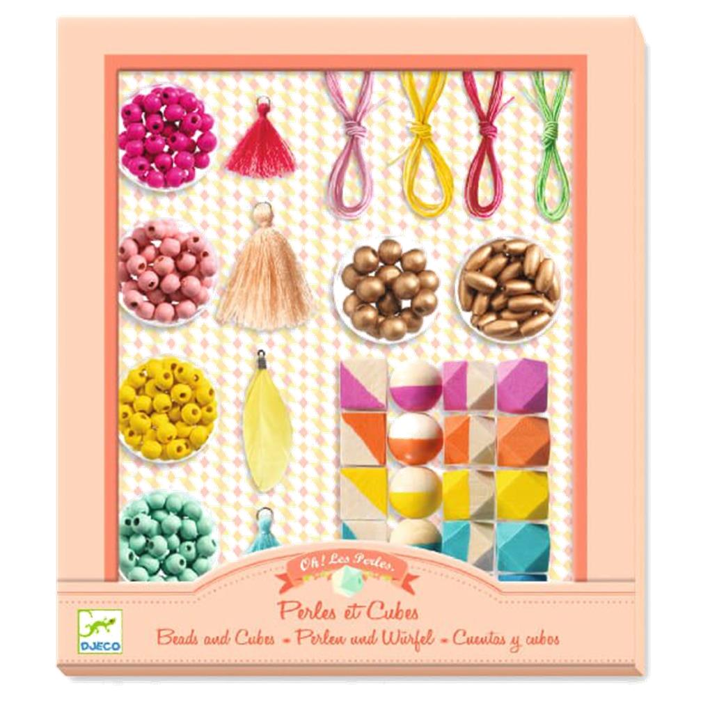 -«Cuentas y cubos», es un cofre muy completo, que contiene una multitud de cuentas de madera y accesorios para crear hermosas piezas de bisutería. Un surtido de cuentas de madera de colores y de madera natural, concebidas para un resultado siempre armonioso. Se ensartan las cuentas geométricas y los accesorios en los hilos para hacer bonitos collares o pulseras con total libertad.