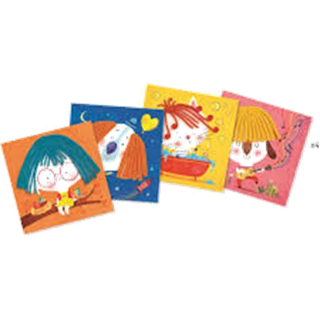 Este fantástico juego viene con cuatro tarjetas reutilizables que los niños crean divertidos peinados en los personajes.