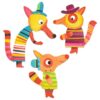 Una caja de pinturas para decorar y reconstituir la familia de los zorros. Tres grandes personajes para colorear con pintura.