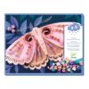 Paso a paso y siguiendo las indicaciones del librito ilustrado, los niños se divierten poniendo perlas sobre filones. Una vez las perlas encaramadas, los niños las colocan en los escenarios ilustrados y perforados, creando ilustraciones en relieve que se iluminan como por magia: una mariposa, un búho y un murciélago.
