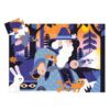 -Un paseo nocturno por el bosque encantado en compañía del mago y sus amiguitos, a la luz de su cetro cristalino. Un magnífico puzle de 36 piezas con forma de mago.