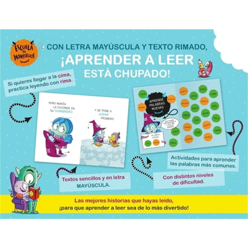 APRENDE A LEER EN LA ESCUELA DE MONSTRUOS Con letra mayúscula y texto rimado