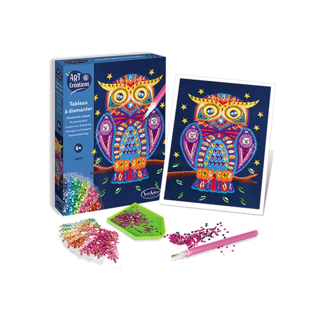 Con la ayuda del pequeño lápiz, simplemente toma los diamantes de imitación y luego transfiérelos a la superficie adhesiva del lienzo. Cada recuadro tiene una letra correspondiente al color de un diamante, por lo que la ilustración es muy fácil de colorear.