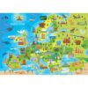 Descubre Europa a través de este fantástico puzzle de 150 piezas. Incluye lámina a todo color con las ilustraciones y los nombres de los animales y monumentos. ¡Encuéntralos en el mapa! Tamaño aproximado del puzzle montado: 48 x 34 cm.