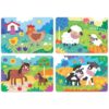 Puzzles progresivos de 5 a 8 piezas. Cada puzzle incluye figuras extraíbles de 1, 2 o 3 piezas. Atractivas y coloridas escenas, ideales para edades a partir de 24 meses. Piezas grandes, fáciles de manipular y de encajar. Temática: mamás y bebés de la granja. Tamaño aproximado del puzzle montado: 23,5 x 16,2 cm.
