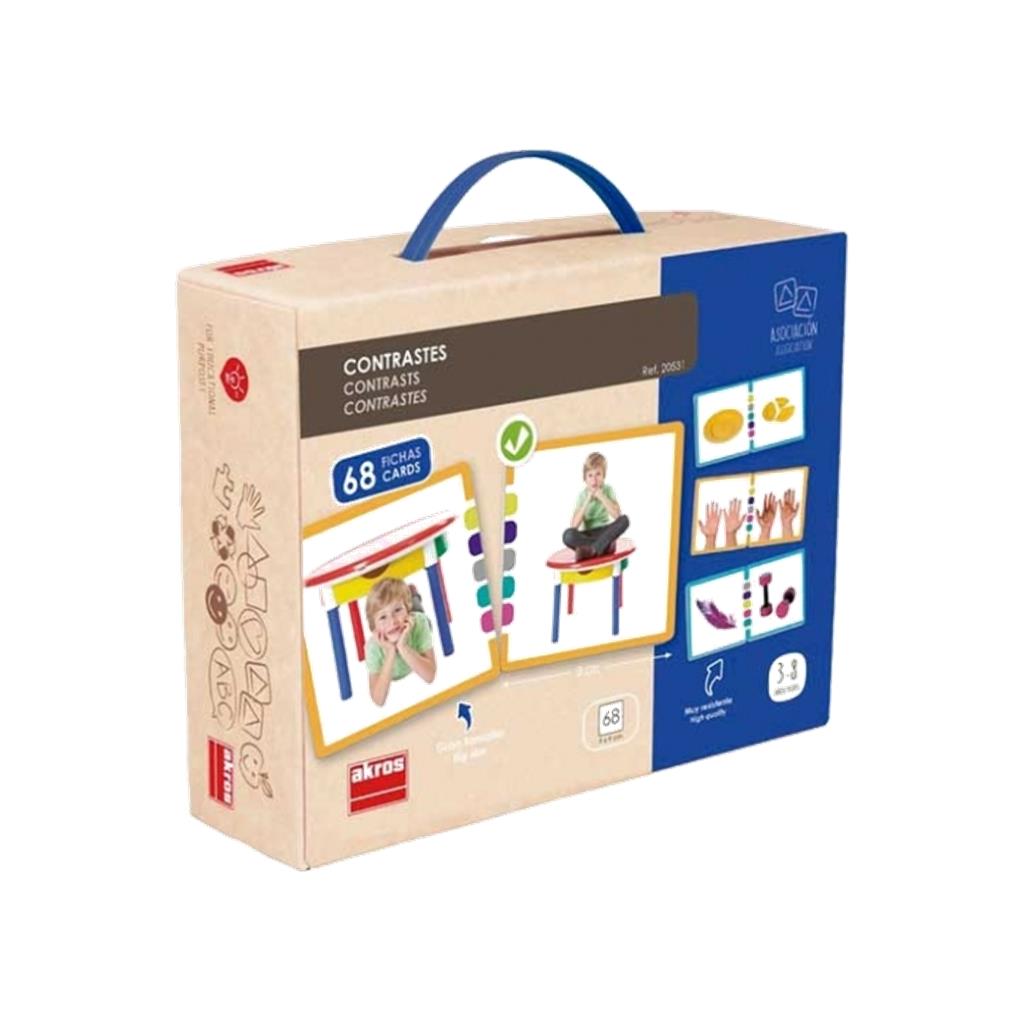 Juego de asociación lógica donde hay que asociar 34 parejas de fichas que representan conceptos opuestos o contrarios.