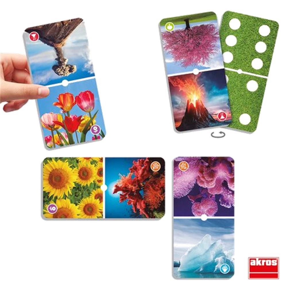 íUn espectacular dominó de fichas grandes para descubrir maravillas de la naturaleza con imágenes reales! Desarrolla la atención mientras exploras curiosidades del mundo natural. Fichas reversibles que también permiten jugar con el sistema de dominó clásico.