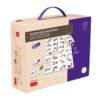 Juego manipulativo que favorece la iniciación a la prelectura y preescritura. Permite la relación objetos-letras iniciales-palabras. Desarrolla la observación y asociación.
