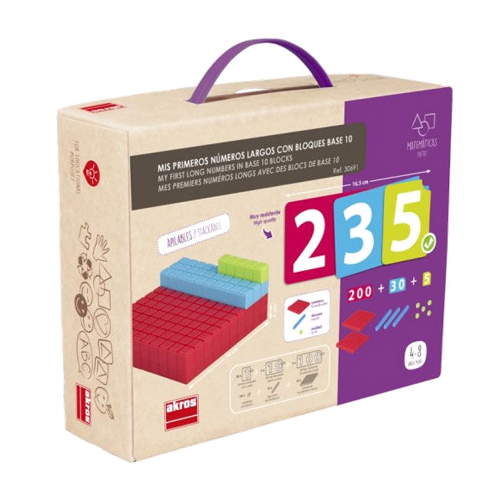 Set que permite representar los números largos del 1 al 999 con material manipulativo base 10: fichas y piezas.