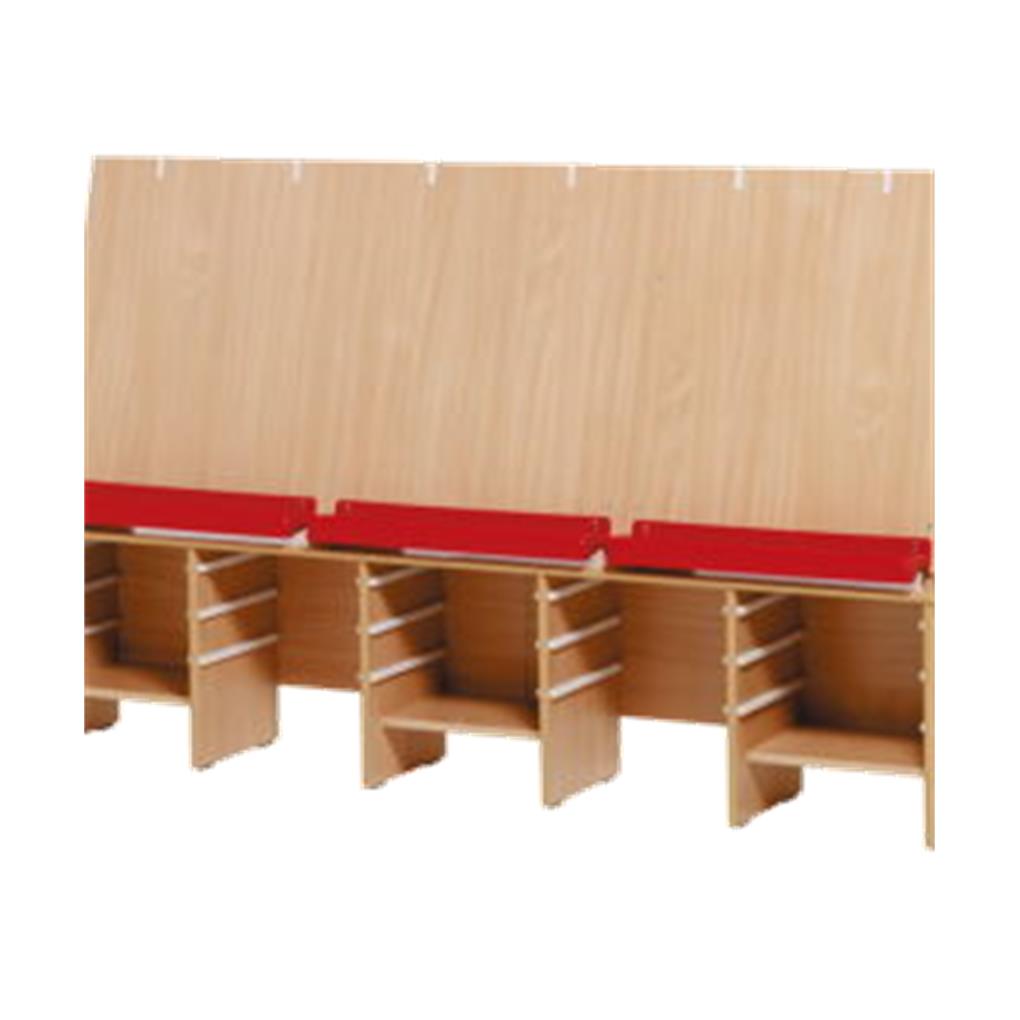 sus diversas alturas. El mueble se entrega con 3 cubetas de plástico rojo