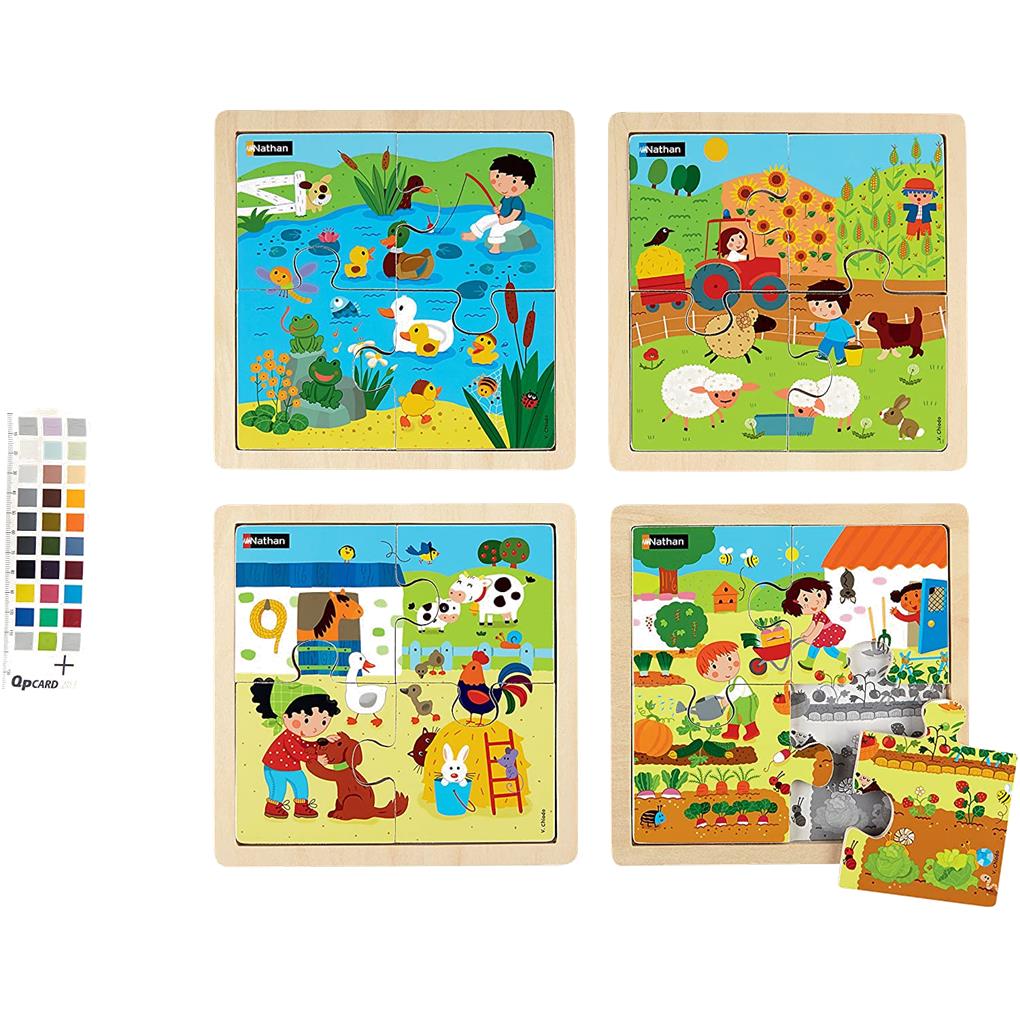 4 puzzles: el corral de la granja, el estanque de