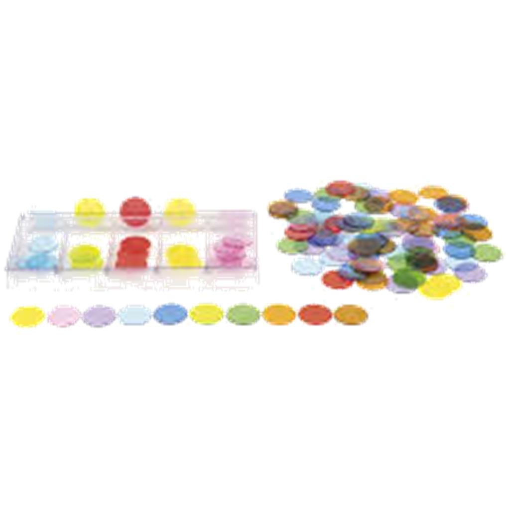 Cajas de clasificación de plástico translúcido para actividades de clasificación.