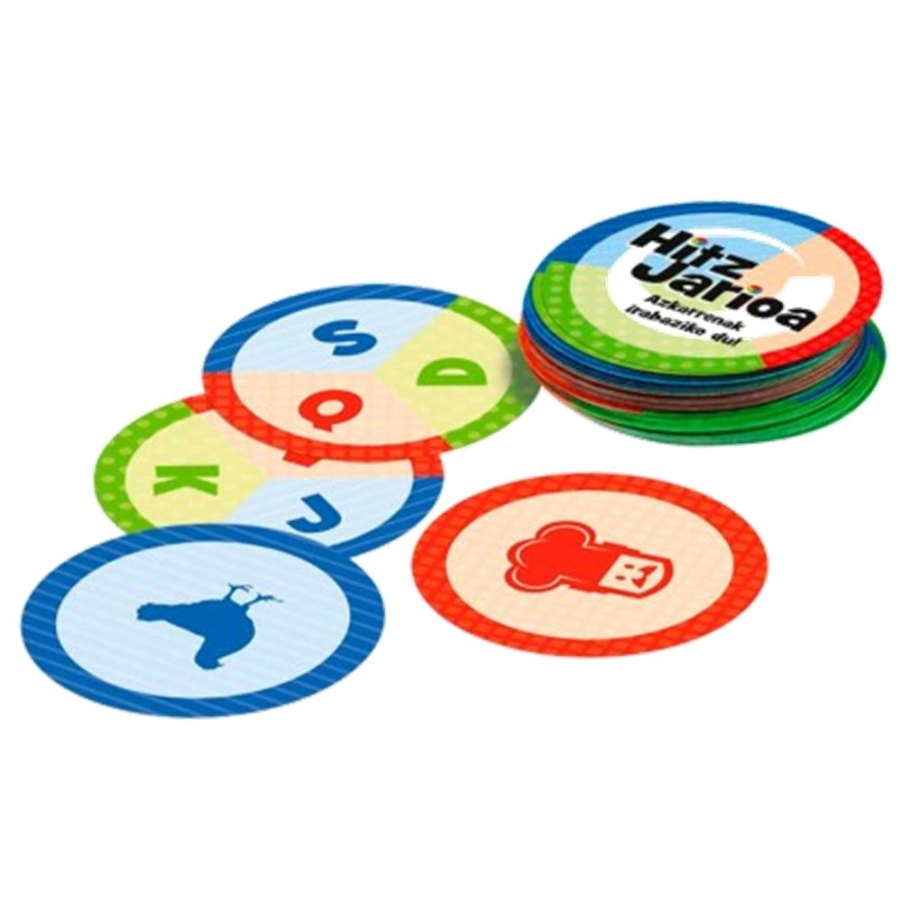 Palabrea con este divertido juego de cartas de doble cara. En una cara se representan las 10 categorías del juego y En la otra 3 letras de distinto color. Sé el primero en encontrar una palabra de la categoría que indica la carta y que comience por la letra del mismo color. ¡Sé el más rápido y conviértete en el SUPERPALABRERO!