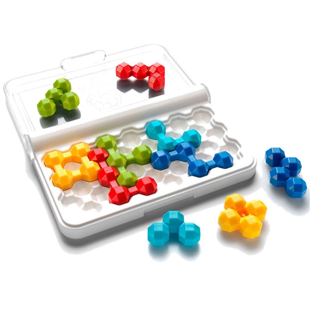 IQ Twins desafía a los jugadores a colocar 10 piezas (5 pares) en el tablero de juego.