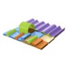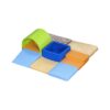 Conjunto de psicomotricidad diseñado para niños de edades comprendidas entre los 6 y 18 meses con el objetivo de desarrollar las habilidades motoras. Las piezas son intercambiables y permiten crear nuevas composiciones. 16 piezas y 4 obstáculos
